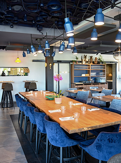 Ici, l’assiette est à l’image du décor : l’envie de faire cohabiter une cuisine de tradition française avec des recettes du monde est la signature de ce nouveau restaurant où les tablées de familles, d’amis ou de collègues de travail se mêleront joyeusement.